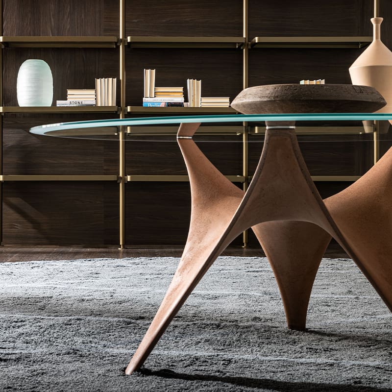 Molteni – Tavolo Arc base cemento nero top vetro fumè d150