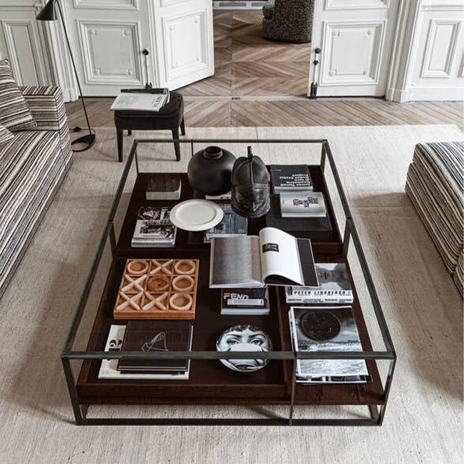 L’arredamento della casa concepito da Afra e Tobia Scarpa si afferma rapidamente come punto di riferimento del design italiano. Una collezione di mobili di pregio in legno completamente “made in Italy”.