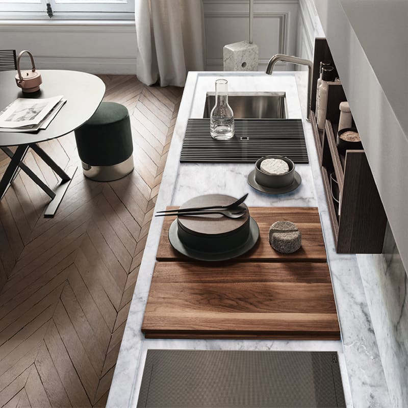 Obiettivo di Arclinea è realizzare progetti che durino nel tempo, capaci di generare ogni volta la cucina desiderata. Perché se la perfezione esiste all’interno di un progetto, questo accade solo quando esso ha la sapienza di rispondere a ciò che è chiamato ad essere: sintesi di valori coniugati. Arclinea da sempre affronta la complessità del progetto, puntando a conciliare la precisione tecnica con quella funzionale. L’innovazione delle forme con quella degli spazi e scegliendo di lavorare da anni con Citterio, per produrre non solo arredi ma nuove architetture da abitare. Qualità, intesa anche come tutela, quindi, protesa a realizzare tutti gli accorgimenti necessari al rispetto dell’uomo e dell’ambiente in ambito industriale. Capacità di organizzazione del lavoro, perfetta integrazione del rapporto tra uomo e macchina, ottimizzazione dei tempi e delle risorse umane.