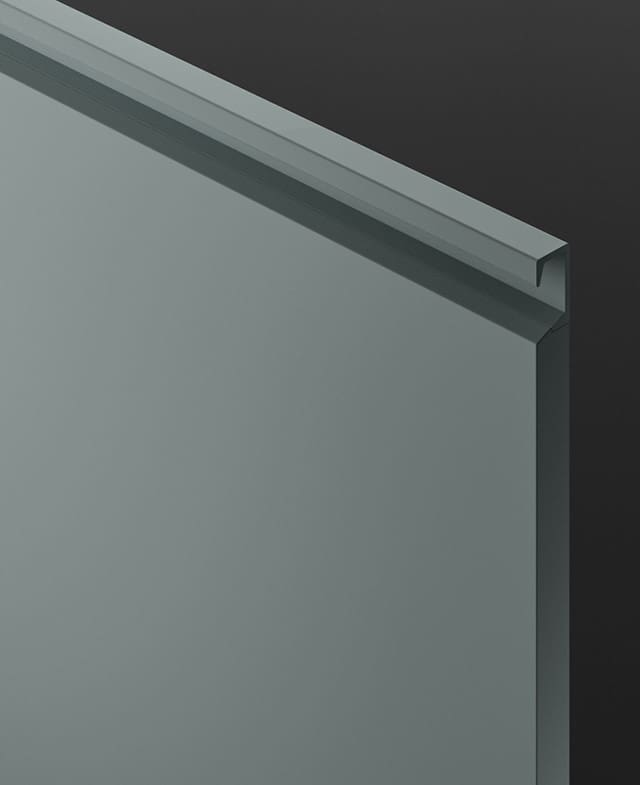 Arclinea -Cucina Beta; Consente di progettare con versatilità ogni ambiente cucina, integrandosi con tutti gli elementi della Collezione Arclinea: permettendo così l’unicità di ogni singolo progetto. L’anta, caratterizzata da una maniglia orizzontale, è integrata sulla lunghezza dell’anta. Essenziale nel disegno e funzionale nell’utilizzo, la maniglia Beta è un profilo in alluminio verniciato in finitura acciaio o nero, oppure nella stessa finitura dell’anta. Grazie alla flessibilità costruttiva dell’anta, disponibile in due modularità, la maniglia può essere integrata, in posizione orizzontale o verticale.