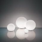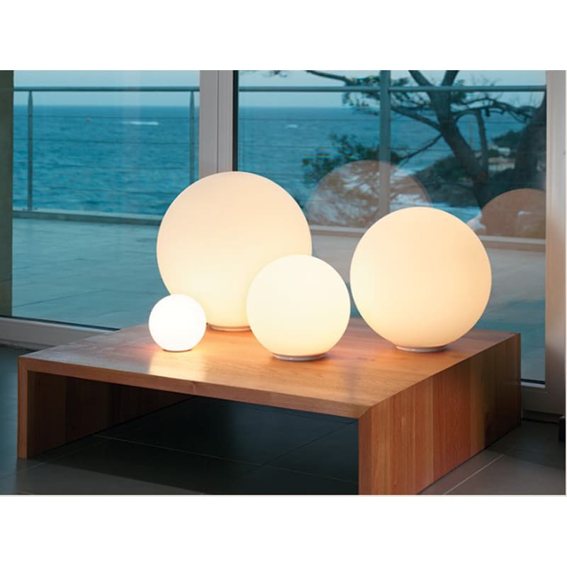 Artemide – Lampada da Tavolo Dioscuri 35; Una linea di lampade da tavolo con base in policarbonato con zavorra in acciaio; diffusore in vetro soffiato acidato.