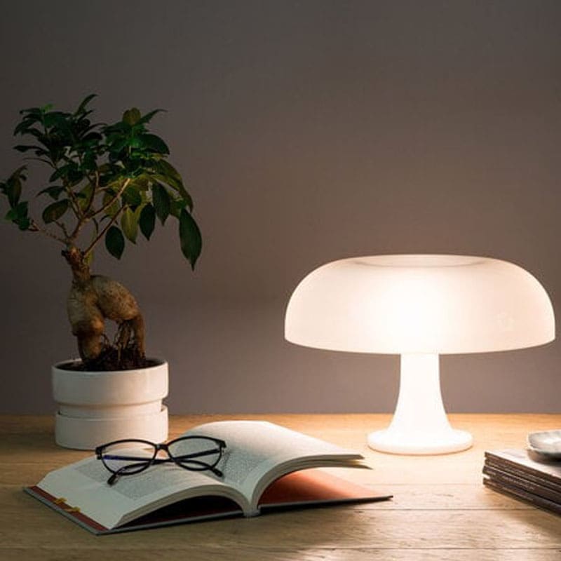 Artemide – Lampada da tavolo Nesso bianca; Nesso è un’icona internazionale del design futuristico e democratico. Progettata da Giancarlo Mattioli e dal Gruppo Architetti Urbanisti Città Nuova, negli anni ’60. Parte della linea rieditata “Modern Classics”. Fu una meraviglia dello stampaggio ad iniezione termoplastico in ABS portando così materiali e metodi industriali negli ambienti domestici e d’ufficio. Un tocco di colore e un design ispirato alla natura. Nesso nasce dall’identità visionaria di Artemide. Le sue curve iconiche si snodano in un vero e proprio oggetto da collezione, un pezzo espressivo di grande calibro e fama internazionale. Opera iconica che ha messo in scena la sua presenza in diversi punti di riferimento, Nesso è considerata un’opera d’arte di valore. Un'”icona” del design, parte delle collezioni permanenti del Metropolitan Museum of Art e del Museum of Modern Art.