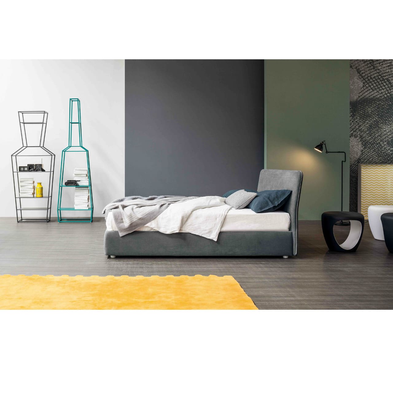 Bonaldo – Letto matrimoniale Tonight; Tonight, nonostante le sue linee semplici, è un letto singolo o matrimoniale che riesce a caratterizzare lo spazio in cui è inserito. Le sue proporzioni sono studiate accuratamente e lo