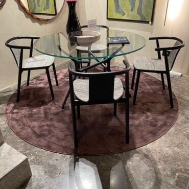 Tenendo presente la giocosità del movimento Memphis e mescolando elementi come motivi e forme con diverse tecniche di produzion eche danno vita ai tappeti. The Ultimate Bliss, crea un sofisticato paesaggio tessile con una varietà di altezze del pelo create in lana himalayana e pura seta. Un design così denso che puoi, come dice il designer, “perdersi nella beatitudine”.