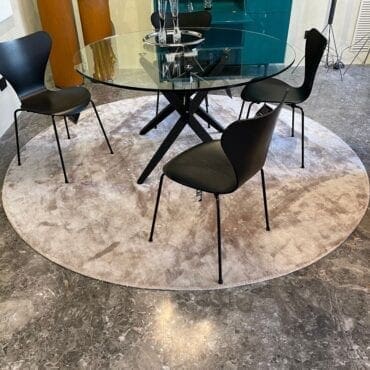 Tenendo presente la giocosità del movimento Memphis e mescolando elementi come motivi e forme con diverse tecniche di produzion eche danno vita ai tappeti. The Ultimate Bliss, crea un sofisticato paesaggio tessile con una varietà di altezze del pelo create in lana himalayana e pura seta. Un design così denso che puoi, come dice il designer, “perdersi nella beatitudine”.