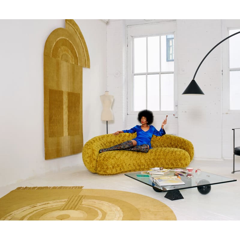 Cc tapis – Tappeto Bliss Big Ultimate Gold; La Collezione Bliss è caratterizzata da un effetto scultoreo e tridimensionale che inizialmente è stato ispirato da un campionario che Mae Engelgeer ha creato dove stava sperimentando forme arrotondate e curve. Ciò è avvenuto dopo un periodo di utilizzo di linee grafiche rette e sentendosi catturata da esse, Mae ha sentito il bisogno di utilizzare nuovamente forme audaci.