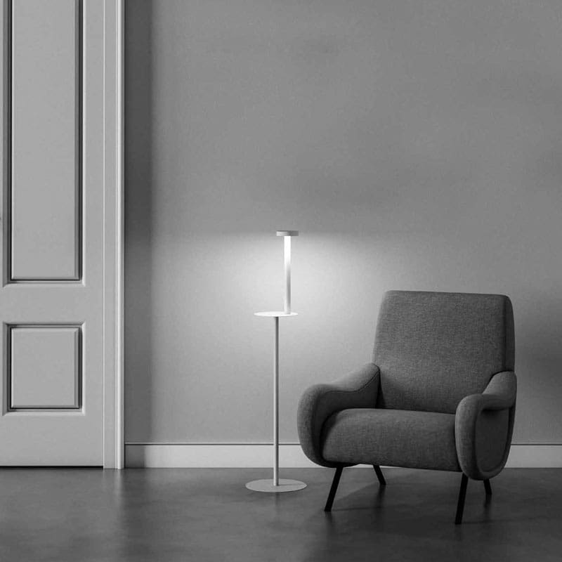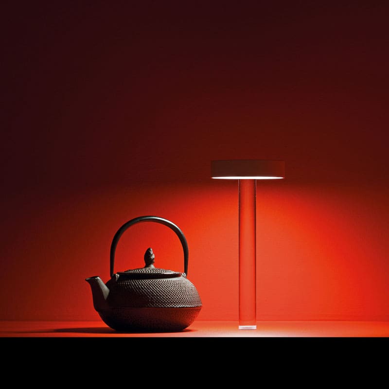 Davide Groppi – Lampada da tavolo TeTaTeT Flûte bianco 2700K; L’evoluzione del modello Tetatet. L’adozione di una innovativa batteria ricaricabile al litio, collocata nella testa, ha permesso di rendere invisibile lo stelo. La testa appare leggera e sospesa nel vuoto mentre l’effetto della luce sulla tavola è magico. Lo stelo trasparente, realizzato in metalcrilato, evoca i materiali utilizzati nelle classiche “mise en place” rendendo estremamente naturale e spontaneo l’utilizzo di Tetatet Flûte sulla tavola apparecchiata.