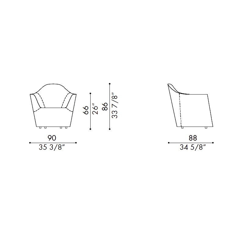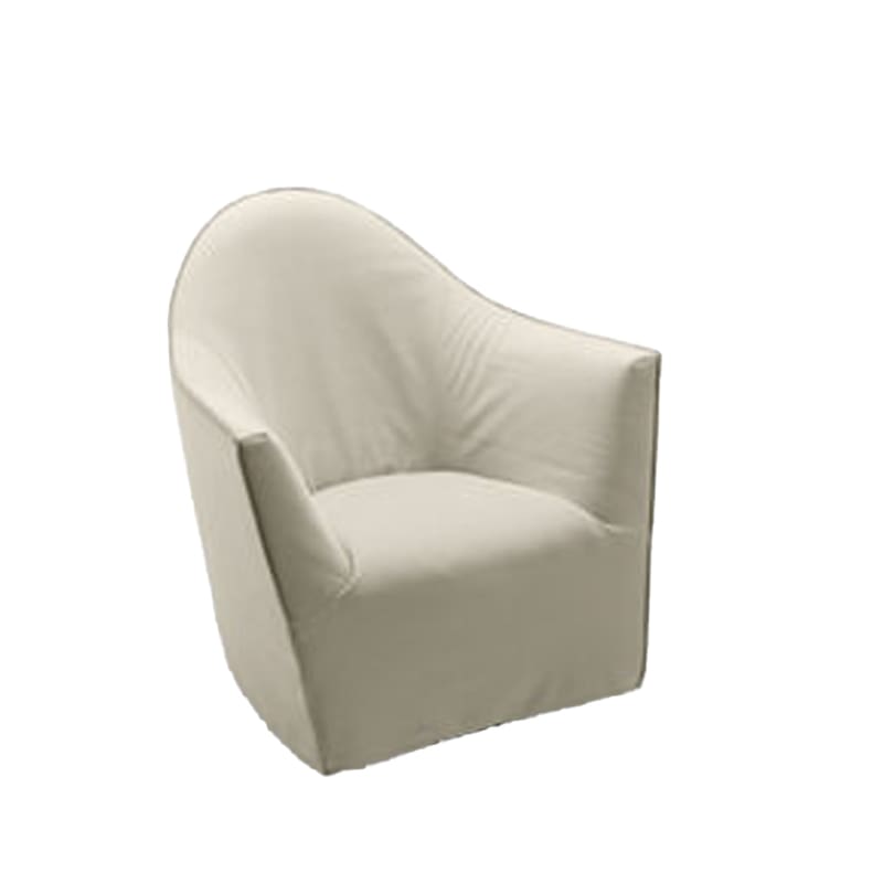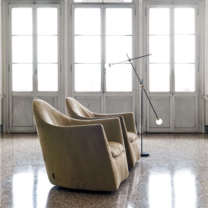 Désirée – Poltrona Eldora rivestita in pelle o tessuto; Un profilo sinuoso ed elegante unisce i braccioli allo schienale leggermente più alto, questa caratteristica senza tempo rende la poltrona unica. Eldora presenta due versioni: standard, con cucitura a vista “ton sur ton” per il rivestimento in tessuto e a taglio vivo per quello in pelle; class, con cuscino a vista.