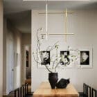 Flos – Sospensione Coordinates S3 champagne anodizzato; Coordinates è un sistema di illuminazione a luce diffusa composto da aste orizzontali e verticali disposte a formare griglie luminose di varia forma e complessità. Ogni asta è composta da un corpo in alluminio estruso lavorato e anodizzato in colorazione champagne e da un diffusore in silicone ottico platinico, stripled integrato (CRI 95). Ogni asta è sostenuta grazie ad un sistema di connessione elettrica e meccanica, che rimane invisibile, studiato per consentire la composizione dei 4 modelli a sospensione (S1, S2, S3, S4) con cavi lunghi 2,5mt.