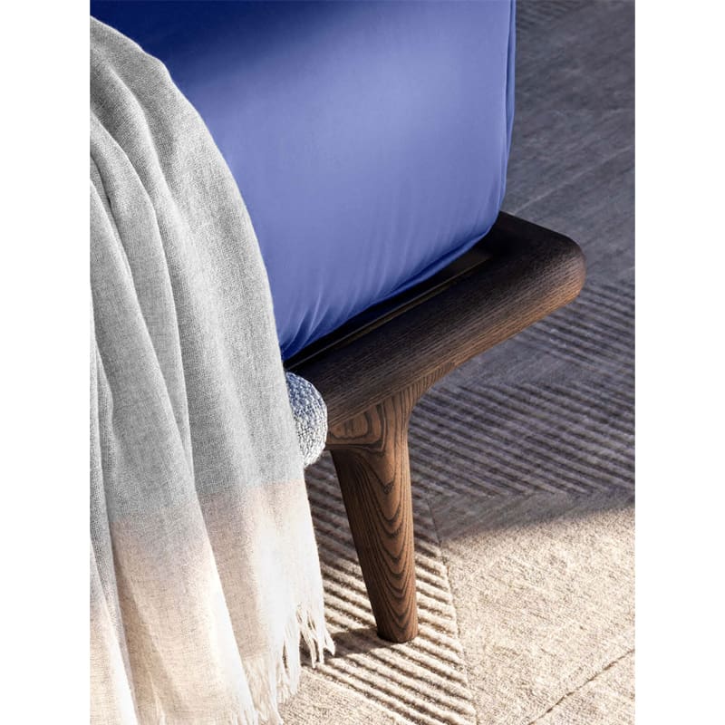 Flou – Letto matrimoniale Gaudì piano doghe regolabile 180×200 rivestimento cat. 5 Velluto 0742; Il letto matrimoniale Gaudí vuole essere un omaggio alla nobiltà del legno, elemento naturale per eccellenza. La testata e i piedi di appoggio in massello, nelle finiture rovere caffè, rovere tinto nero o frassino naturale, sono il risultato di preziose lavorazioni artigianali e creano un’impalcatura sinuosa pronta ad accogliere il rivestimento in tessuto o pelle.