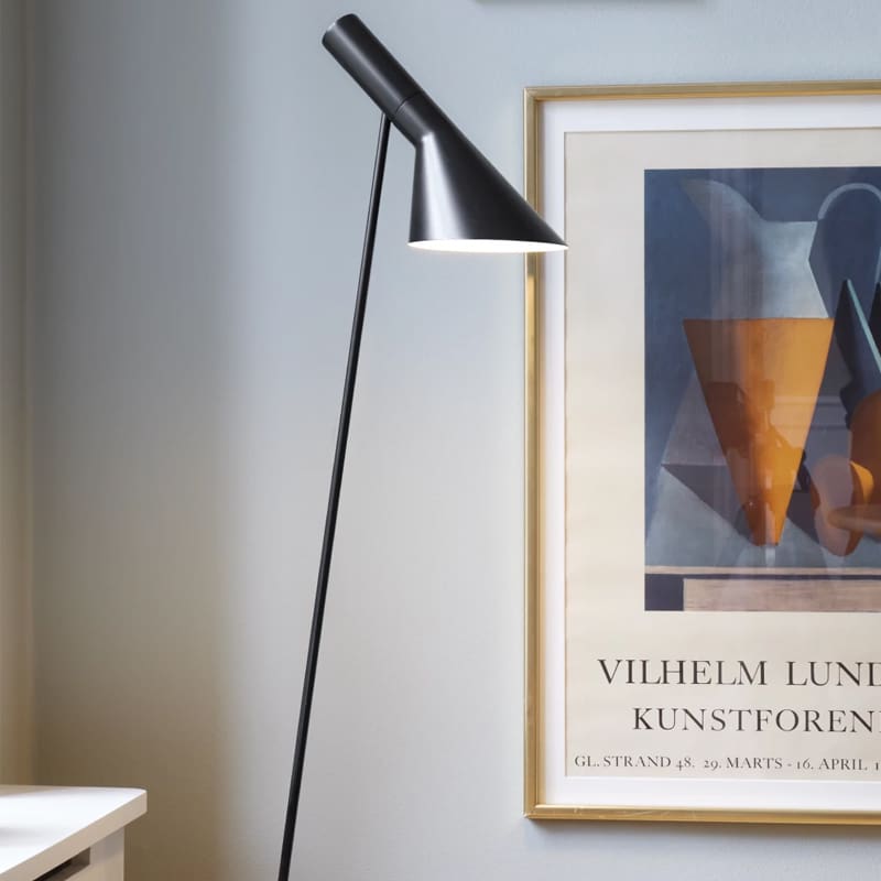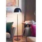Fontana Arte – Lampada da terra Cheshire Media nero ; Riflette l’impronta nordica dello studio nella semplicità dell’estetica e della funzionalità. La calotta è di policarbonato opalino per favorire l’emissione diffusa. Colorato per diffondere la luce verso il basso nella versione da tavolo e da terra oppure verso l’alto (nella versione sospesa).