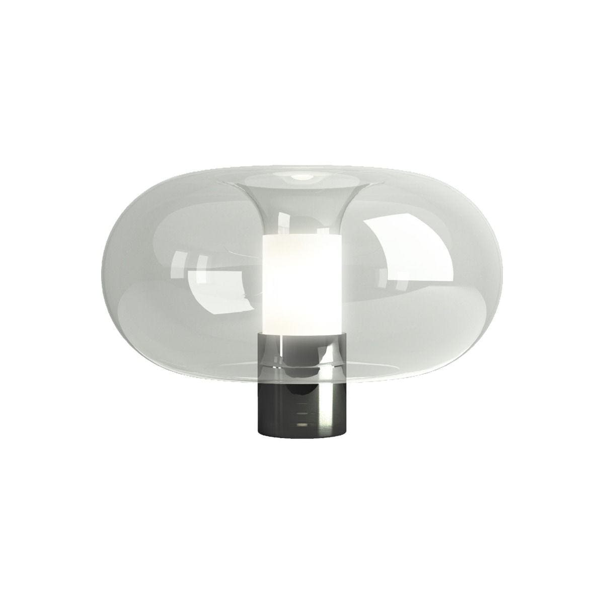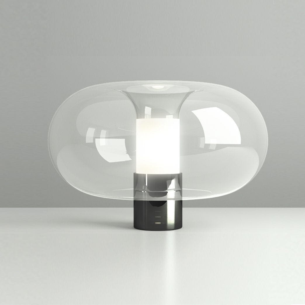 Fontana Arte – Lampada Fontanella Grande Nero lucido; Due materiali: metallo e vetro, come nella storica tradizione di FontanaArte. Il metallo funge da base e contiene la sorgente luminosa mentre il vetro, vero protagonista del progetto, viene sapientemente lavorato da abili artigiani in un processo di fusione fra una porzione di vetro trasparente ed una satinata dalla quale la luce si diffonde. Fontanella è formata dall’unione di due vetri: il tubo interno viene filettato, sabbiato ed infine giuntato con il vetro soffiato a forma di bolla. Ciò che rende particolarmente raffinata la lavorazione è la giuntura manuale delle due parti che richiede la sapiente tecnica di un artigiano. Il vetro inoltre, da sempre il materiale per eccellenza dei prodotti FontanaArte, è il più cristallino esistente sul mercato. A completare la contemporaneità di questo pezzo FontanaArte, si aggiunge la possibilità di utilizzare lampadine, dimmerabili e non, a massimo risparmio energetico.