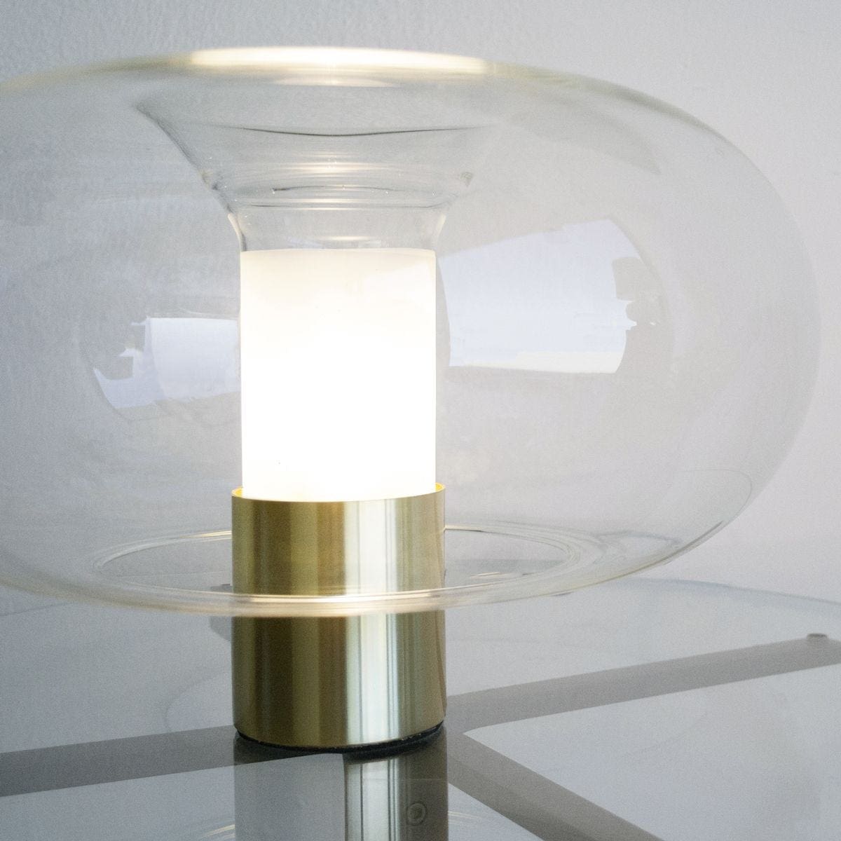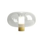 Fontana Arte – Lampada Fontanella Grande Ottone spazzolato; Due materiali: metallo e vetro, come nella storica tradizione di FontanaArte. Il metallo funge da base e contiene la sorgente luminosa mentre il vetro, vero protagonista del progetto, viene sapientemente lavorato da abili artigiani in un processo di fusione fra una porzione di vetro trasparente ed una satinata dalla quale la luce si diffonde. Fontanella è formata dall’unione di due vetri: il tubo interno viene filettato, sabbiato ed infine giuntato con il vetro soffiato a forma di bolla. Ciò che rende particolarmente raffinata la lavorazione è la giuntura manuale delle due parti che richiede la sapiente tecnica di un artigiano. Il vetro inoltre, da sempre il materiale per eccellenza dei prodotti FontanaArte, è il più cristallino esistente sul mercato. A completare la contemporaneità di questo pezzo FontanaArte, si aggiunge la possibilità di utilizzare lampadine, dimmerabili e non, a massimo risparmio energetico.