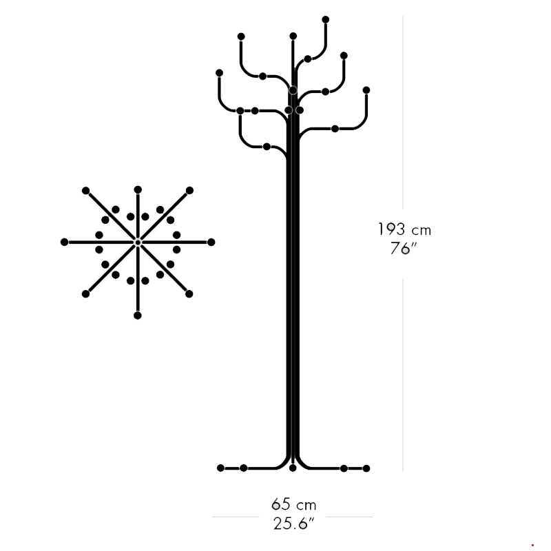 Fritz Hansen – Appendiabiti Coat Tree cromato; The Coat Tree è stato progettato da Sidse Werner. È uno dei membri più mobili e funzionali al mondo in questa categoria. L’aspetto leggero e fragile nasconde il fatto paradossale che è anche uno degli stand più robusti e pratici al mondo: su di esso puoi appendere un numero sorprendentemente grande di cappotti pesanti. Il design dinamico è sottolineato dalla sua capacità di integrarsi ovunque e adattarsi allo stile di ogni stanza. I rami sono ricoperti da sfere che sostituiscono i ganci per contenere cappotti, cappelli, borse e altri oggetti che devono essere appesi.