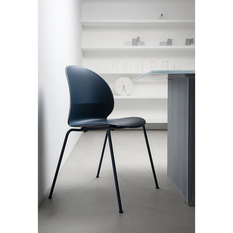 Fritz Hansen – Sedia N02 Recycle nero; N02 Recycle è una sedia multiuso realizzata con rifiuti domestici in plastica riciclata che può essere nuovamente riciclata. Una piega nella parte posteriore della sedia è infatti ispirata a un pezzo di carta piegato sul tavolo dello studio del designer e fornisce un supporto extra per la parte superiore e inferiore della schiena. N02 Recycle inoltre è particolarmente adatto per il lavoro, le riunioni e per le disposizioni per la cena. La sedia a quattro gambe N02 Recycle è elegantemente semplice e funzionale, oltre che impilabile e facile da disporre in file. Le gambe in acciaio dolcemente curvate ricordano i design delle sedie monoscocca di Arne Jacobsen e Vico Magistretti.