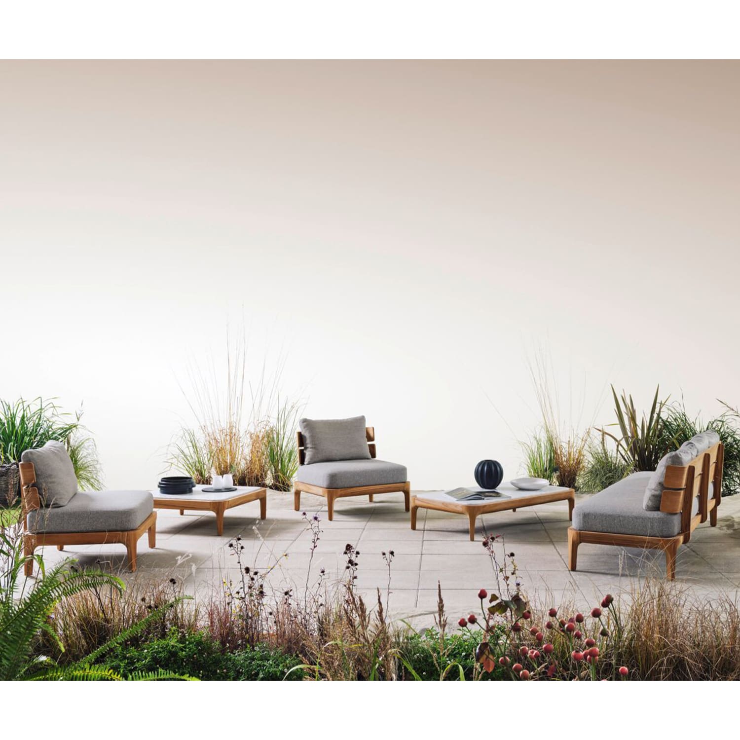 Gervasoni – Poltrona Mediterraneo 01; Nella collezione Mediterraneo di Francesco Meda ogni pezzo è caratterizzato da una struttura in teak che, trattato con maestria, conferisce un tocco essenziale, semplice e naturale. Gli schienali avvolgenti e le forme curve, arricchite da importanti cuscini, rimandano ad una sensazione di morbidezza ed eleganza e sembrano abbracciare chi vi si siede, amplificando un’esperienza di comfort.