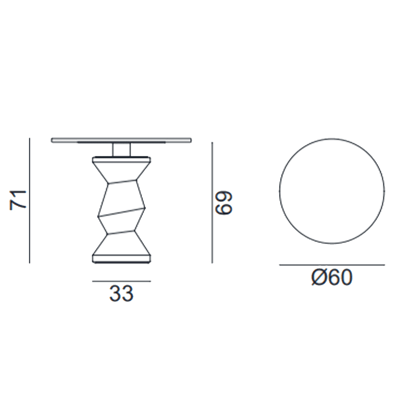 Piano del tavolo disponibile in due dimensioni: diametro da 60cm e diametro da 80cm.