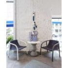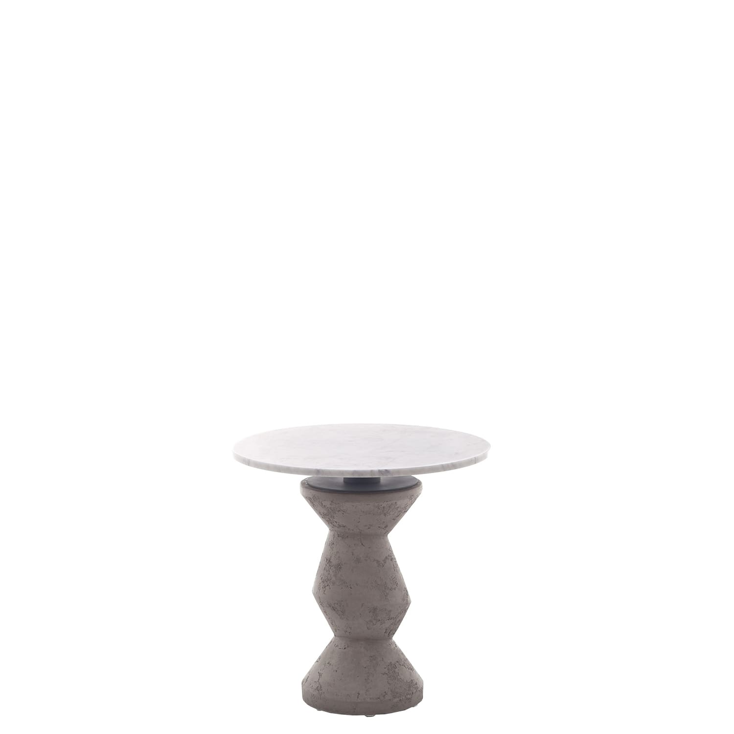 Gervasoni – Tavolo Inout 837 D60; Inout 837 si distingue per la sua essenzialità. Tavolo con piano leggermente rialzato, con struttura a totem asimmetrica, ed con piano in marmo bianco Carrara, per dare vita a prodotti di sofisticata essenzialità.