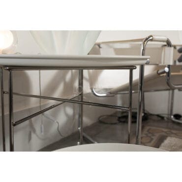 Il profilo in gomma inserito nelle ruote ne facilita il movimento; i due vassoi fungono da portaoggetti; la struttura metallica è anche una maniglia: sollevando leggermente il carrello verso l’alto sarà possibile spostarlo.