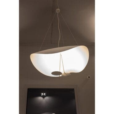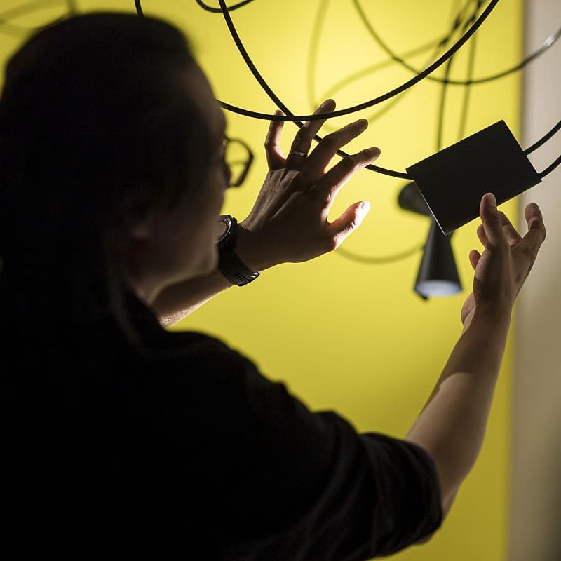 All’estremità del cavo, il paralume in alluminio anodizzato – con luce da posizionare verso l’alto o il basso – è volutamente discreto nella forma proprio per lasciare la scena all’intreccio sospeso dato dal movimento del cavo. Peculiarità è la percezione della sua forma che cambia rispetto al punto da cui lo si guarda, da cono a rettangolo inclinato. Con la sua asimmetria e leggerezza, il paralume esalta così la creatività unica di Signature e offre una luce direzionale con una lampadina GU10.