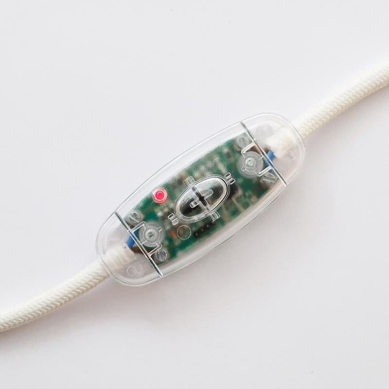 Un cavo tessile colorato avvolge liberamente il tubo di vetro e crea un emozionante contrasto con il carattere lineare dell’apparecchio. I clienti possono scegliere tra rosso e bianco per il colore del cavo tessile. Per quantità maggiori, sono disponibili colori speciali su richiesta: l’apparecchio può essere personalizzato e può essere combinato con cavi di colori diversi su richiesta.