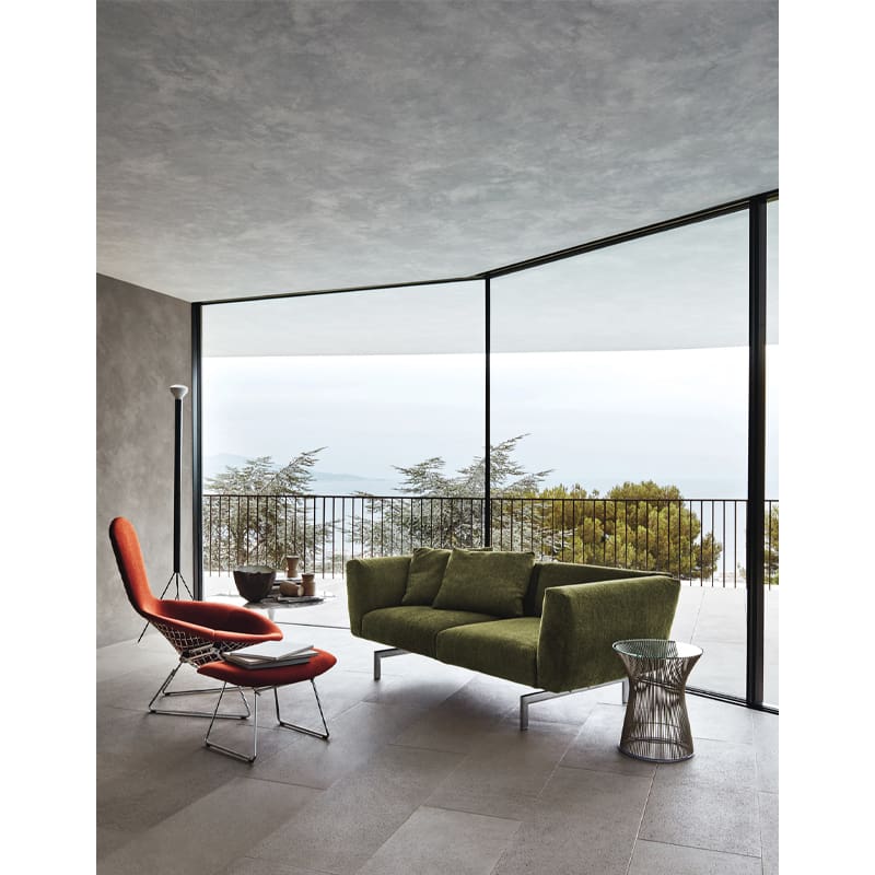Knoll – Divano Avio 184×93 struttura cromata tessuto cat.G; Con una struttura visivamente leggera che si fonde con qualsiasi ambiente, Avio bilancia sapientemente relazioni e proporzioni spaziali. Il divano a due posti unisce equilibrio funzionale ed estetico contrastando la sottile struttura strutturale con il volume consistente del rivestimento.