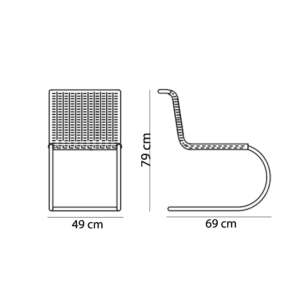 Knoll – Sedia MR Senza Braccioli Midollino; La collezione MR rappresenta alcuni dei primi progetti di mobili in acciaio di Mies van der Rohe. Il materiale della struttura è stato ispirato dal collega maestro del Bauhaus Marcel Breuer, mentre la forma è pensata per essere un derivato moderno delle sedie a dondolo in ferro del XIX secolo.