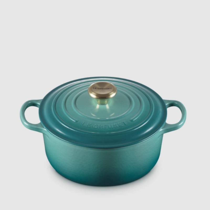 Le Creuset – Casseruola Cocotte Rotonda Evolution d24 Blu Riviera; Da quasi un secolo fa innamorare cuochi e chef di tutto il mondo: è la cocotte Le Creuset, un autentico classico. Perfettamente costruita per fare di ogni tua ricetta un capolavoro del gusto, sarà la tua alleata inseparabile per preparare spezzatini, arrosti, zuppe e stufati, ma anche cuocere in forno.