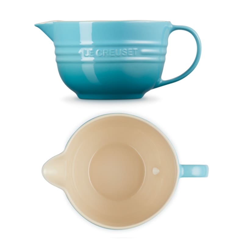 Le Creuset – Ciotola per impastare Blu Caribe; Prepari una torta? O l’impasto per i pancake? La nostra ciotola per impastare in gres vetrificato è perfetta per creare le tue pastelle. Il manico grande ti permette di tenere ferma la ciotola mentre mescoli. E il beccuccio preciso consente di versare la miscela senza paura di fastidiosi gocciolamenti. Qualsiasi prelibatezza, senza disordine.