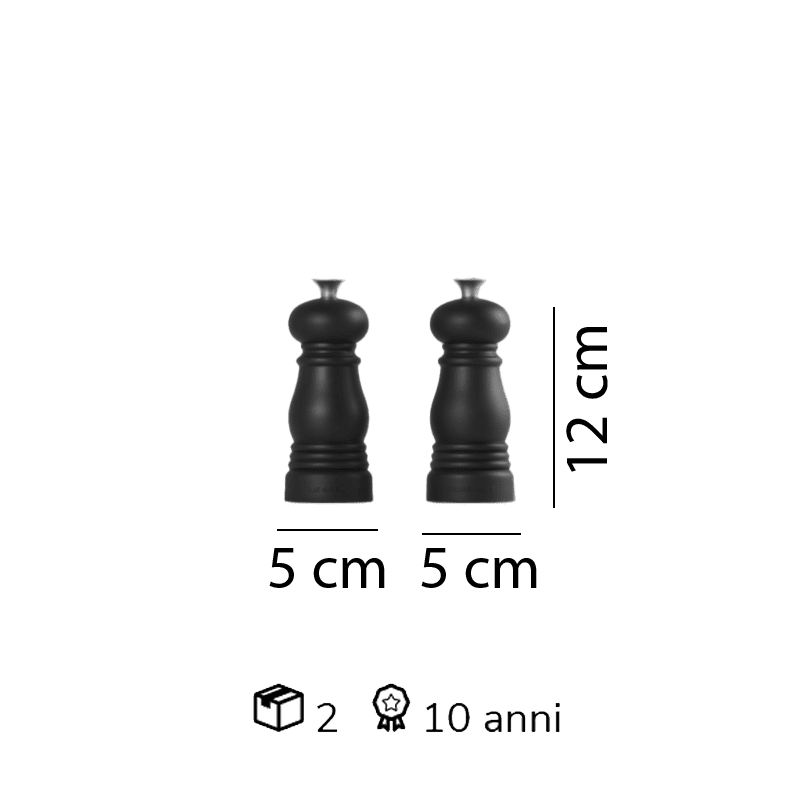 Le Creuset – Set 2 mini macina sale e pepe H12 Garnet; Dai il benvenuto a una splendida coppia! Questo piccolo set di macina sale e pepe trasformerà il momento di insaporire il tuo cibo in un atto teatrale. La macina in ceramica, resistente alla corrosione, macinerà in un attimo i grani di sale grosso e pepe. Inoltre, per regolare lo spessore della macinatura basta girare il pomolo sul tappo. Questi macina sale e pepe sono presentati in un’elegante confezione, per un’idea regalo perfetta.