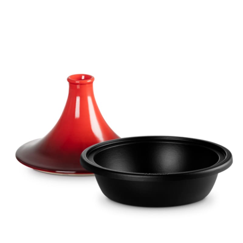 Le Creuset – Tajine 31 Ciliegia; La nostra tajine in ghisa vetrificata è perfetta per preparare un’invitante pranzo marocchino, ma i suoi pregi non si fermano qui. Usala per cucinare a fuoco lento carni o verdure, in qualsiasi modo, aggiungendo una piccola quantità di liquidi. La base in ghisa vetrificata cuoce il cibo in modo uniforme, mentre il coperchio in gres vetrificato trattiene il vapore per formare piccole gocce d’acqua che ricadono sugli ingredienti, rendendoli più succosi e profumati.