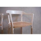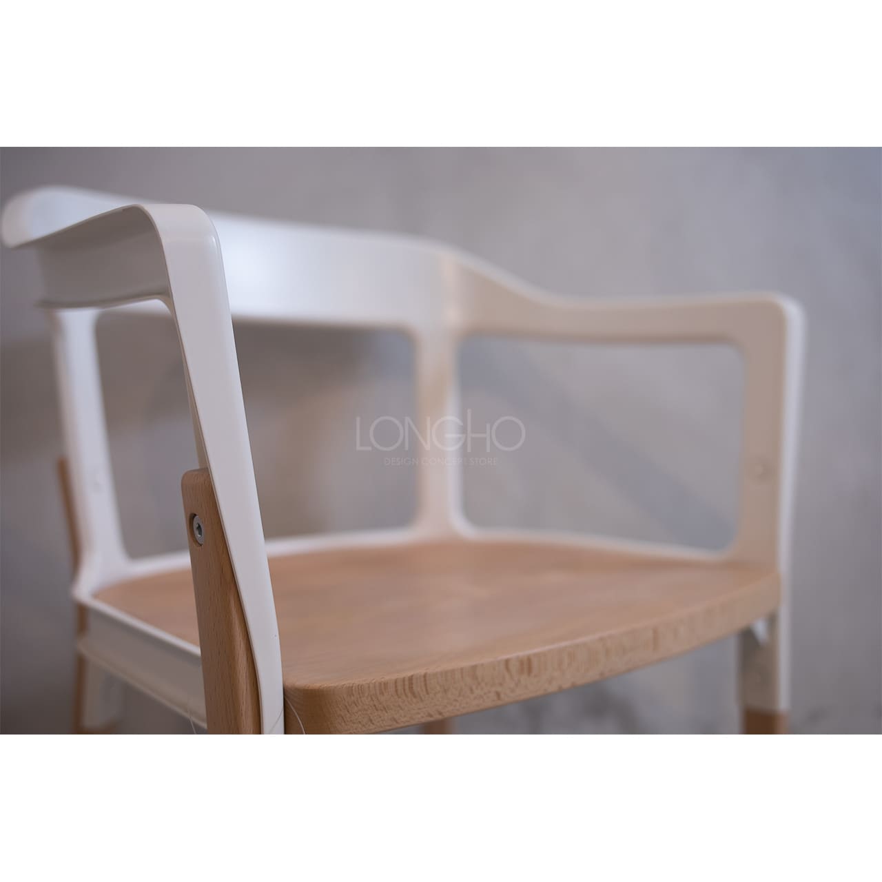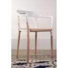 Magis – Sedia Steelwood schienale bianco gambe faggio naturale; Steelwood Chair è una sedia elegante e dalla silhouette classica che presenta una combinazione unica di due materiali tradizionali: il legno e la lamiera di acciaio. Al contempo Steelwood Chair è anche una sedia ad alto contenuto tecnico, in quanto lo schienale in lamiera di acciaio è il risultato di ben nove fasi successive di lavorazione. Piegatura e curvatura della lamiera stessa. Steelwood Chair è una sedia con braccioli con gambe in legno massello.