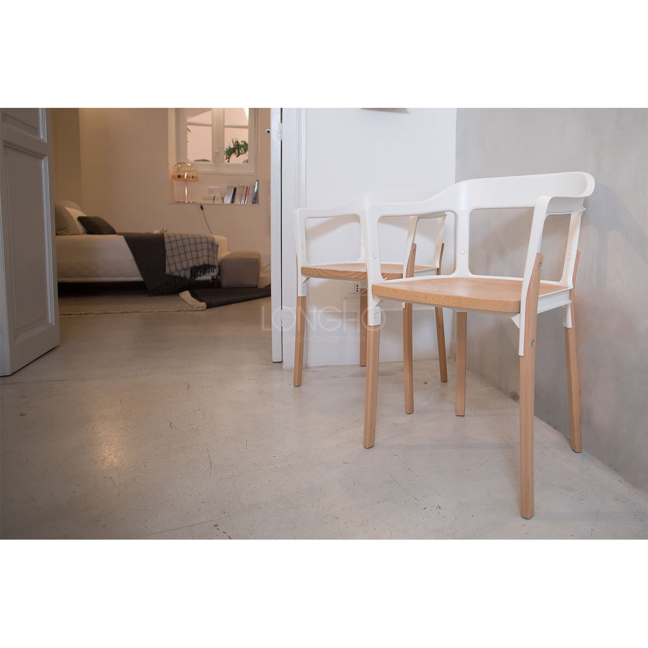 Magis – Sedia Steelwood schienale bianco gambe faggio naturale