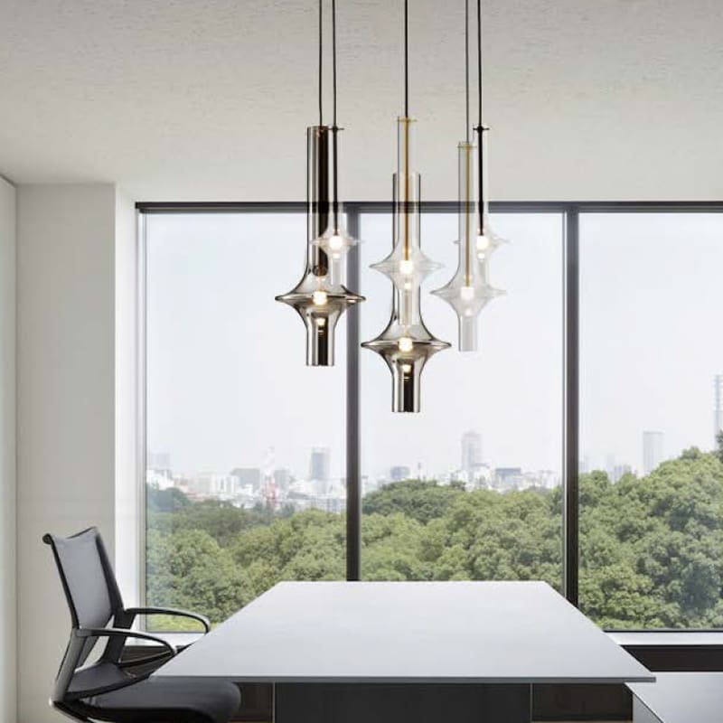 Penta light – Lampada a sospensione Wonder Big Cluster 3B 3000K; La meraviglia della combinazione di più lampade Wonder di dimensioni, finiture e altezze diverse ha la stessa luminosa bellezza del vetro borosilicato con cui sono realizzate le singole canne, in finitura trasparente o fumé.