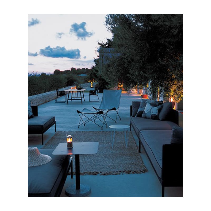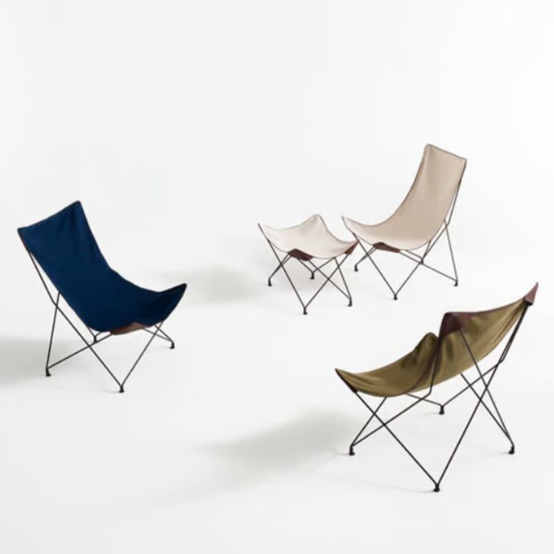 Roda – Poltrona Lawrence 390; Poltrone da esterno dal design semplice ed elegante, trasversale, senza luogo e senza tempo: la linea LAWRENCE coniuga la semplicità del telo in cotone con i colori in un gioco di cromie perfetto nell’arredamento outdoor: bordato da un profilo e tasche in pelle, veste i vertici di quattro triangoli isostatici in tondino di metallo; la seduta avvolgente e il pratico sgabello coordinato, invitano a sedersi e rilassarsi al primo sguardo. La forma segue una funzione. E tutto questo può essere arredo design, anche in giardino o in terrazzo.