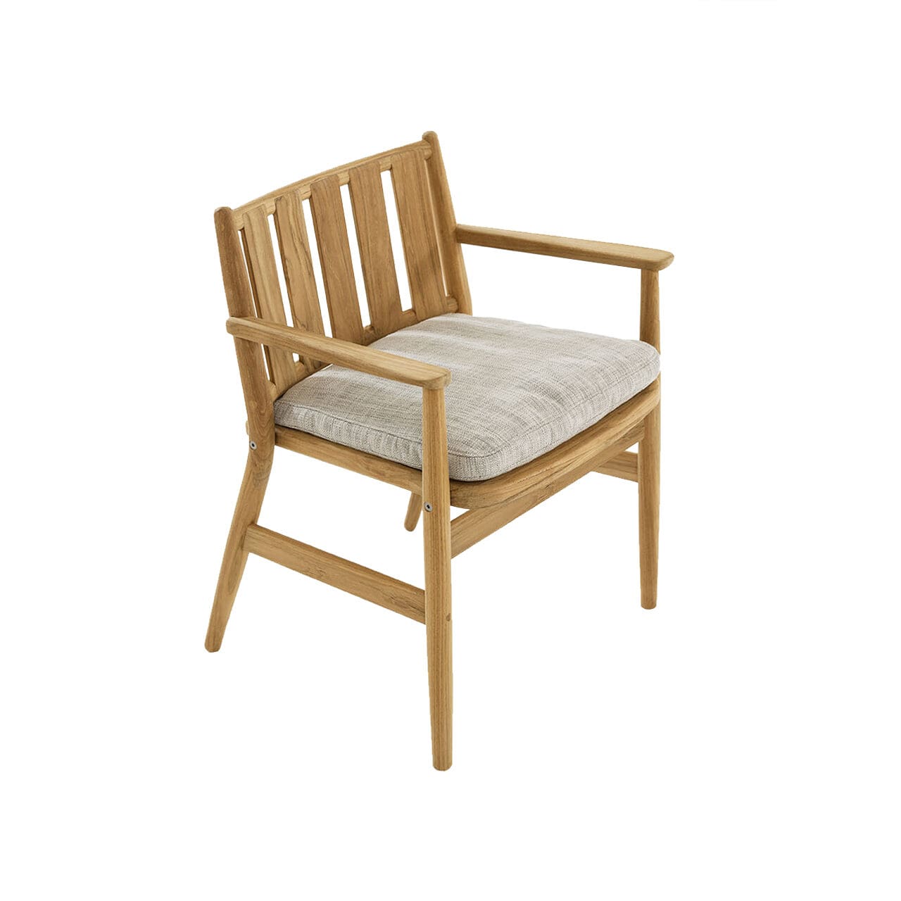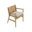 Roda – Sedia con braccioli Levante 001 con cuscino seduta; Levante 001 è una sedia con braccioli da giardino in teak che porta in sé tutta l’eleganza del materiale da esterno per eccellenza.