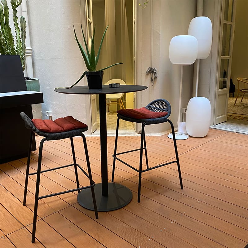 Talenti – Sgabello Bar Panama graphite; Lo Sgabello Bar della collezione Panama si distingue dagli altri prodotti per via della seduta alta, realizzata in corde nautiche sintetiche, che garantisce il sostegno necessario. Grazie all’alluminio, stabile e robusto, della struttura, il prodotto è ideale per completare un arredo da giardino, essendo resistente anche agli agenti atmosferici. Lo Sgabello può essere aggiunta di cuscini (opzionali), per rendere completo il prodotto.