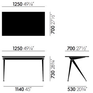 Vitra – Scrivania Compas Direction noce americano 125×70 base Gris Vermeer; Le esili gambe metalliche elegantemente divaricate della scrivania Compas Direction di Jean Prouvé ricordano i bracci incernierati di un compasso, in francese ‘le compas’. La loro progettazione si basa su principi di ingegneria che attestano l’approccio strutturale del designer e ingegnere francese. Abbinate a top tavolo in legno massello oliato, creano un mix di forti contrasti di materiali nell’home office.