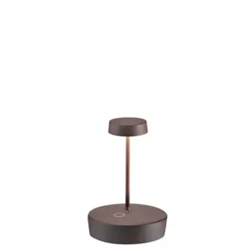 Zafferano – Lampada da Tavolo Swap mini corten; Swap è una lampada da tavolo a batteria portatile e ricaricabile progettata da Federico de Majo, che si contraddistingue per la sua linea elegante ed essenziale.